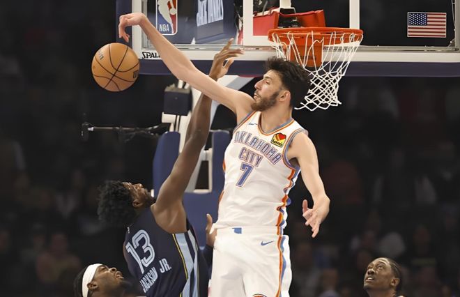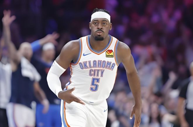 雷霆的防守之所以難解,主要在于切特,他扮演的是可以參與協(xié)防、但不必付出太多代價的萬金油角色,既能護框也能迅速回防,讓雷霆外圍防守可以放心施壓;而一旦有人能在不用掩護、不用復(fù)雜戰(zhàn)術(shù)就得到在禁區(qū)或者肘區(qū)和切特的對位機會時,那么比賽情況就開始改變了。