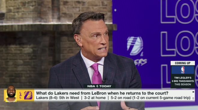萊格勒以湖人慘敗雷霆為例,解析詹姆斯的作用?!拔抑览做锹?lián)盟防守最好的球隊,但我發(fā)現(xiàn)了一個關(guān)鍵問題:湖人當(dāng)時完全無法突破對方的防線。而詹姆斯就能做到這一點。哪怕是比賽開局階段,他推進時也能突破雙人包夾?!?/p>