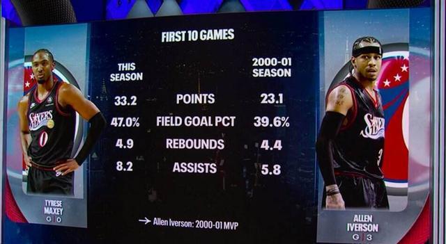 歷史上只有兩名球員做到過(guò)在賽季的前10場(chǎng)比賽連續(xù)砍下25分5助攻——艾弗森和馬克西。