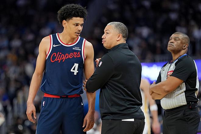 本場比賽中,快船雖然輸?shù)袅吮荣?,但是球隊的替補鋒線新秀科比-桑德斯(Kobe Sanders)的表現(xiàn)其實并不差。桑德斯全場出場16分34秒,投籃2中1,罰球4中4,得到了6分1籃板1助攻的數(shù)據(jù),還有2次失誤和3次犯規(guī),正負值為+4。值得一提的是,桑德斯也是快船全隊唯一一名正負值為正數(shù)的球員。桑德斯在進攻端雖然貢獻度不高,并沒有太多的得分,但是這其實也和他出場時間不多和出手次數(shù)有限密切相關(guān)。桑德斯在進攻端還是能夠起到一定的作用的,而且他也具備一定的傳導(dǎo)球能力。只是戰(zhàn)術(shù)地位方面的不足直接影響到了他在進攻端的表現(xiàn)。不僅如此,桑德斯在防守端的表現(xiàn)其實也不算糟糕,他也是有著很高的防守積極性并且起到了不差的防守效果。只是快船更多地還是選擇了信任老將,桑德斯也沒有辦法為球隊提供更多的支持了。