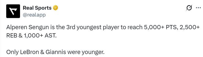 此外,23歲132天的申京成為歷史上至少拿下5000分2500籃板和1000助攻第三年輕的球員,僅次于詹姆斯和字母哥。這一數(shù)據(jù)凸顯了申京的全能天賦。