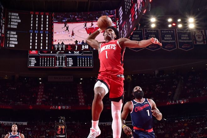 所以易邊再戰(zhàn),我們看到了火箭隊開始在防守端發(fā)力,一波8-0的進攻高潮直接完成反超,再次掌握場上主動權。然后兩隊一直鏖戰(zhàn)到關鍵時刻,比分交替領先。不過最后時刻的劇情,出乎所有人的意料。最后1分半鐘的時間,快船隊落后5分,哈登搶時間強行出手三分,結果三不沾。好在后面快船隊再次得到機會,將比分縮小到3分,一個進攻回合!然后哈登將功補過,接到巴圖姆傳球三分抬手就有,兩隊打平!這個時候,杜蘭特仍然沒有站出來,因為似乎不需要他。謝潑德雖然三分不中,但申京和阿門在內線瘋狂沖擊籃板,后者高高躍起補籃打進,還有罰球!