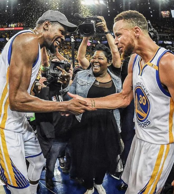 兩人的擋拆配合是奪冠的“絕命殺招”,如果說約穆組合的擋拆令人畏懼,那么CD組合的擋拆便足以讓對手絕望。對手若夾擊庫里,杜蘭特便能獲得輕松的終結(jié)機會;若防守杜蘭特,庫里則能利用空檔完成三分投射。兩人的得分能力超強,且技術(shù)特點相互彌補,杜蘭特擅長兩分球,庫里擅長三分球,讓球隊的進攻選擇更加多元化。在兩人聯(lián)手期間,他們帶領(lǐng)勇士多次奪得總冠軍,建立了屬于自己的王朝。CD組合的威懾力,在于他們將天賦與投射完美結(jié)合,重新定義了雙人組合的得分上限。